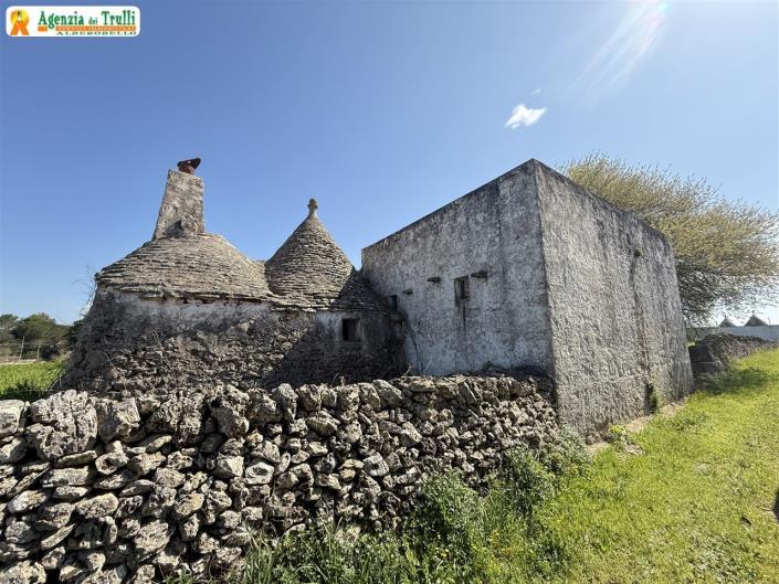 Description: the property is entirely made of stone and it includes two adjacent homes, not currently communicating. In the first part there is a large a large entrance hall with a star-shaped vault, two small bedrooms, a bathroom and an alcove with a an alcove with kitchen and a fireplace. The second part has a barrel-vaulted lamia inside which there is a niche and the ancient oven. From this lamia you can access a trullo where you can create the communication door with the first real estate unit as well as two other trulli and an alcove with another fireplace.