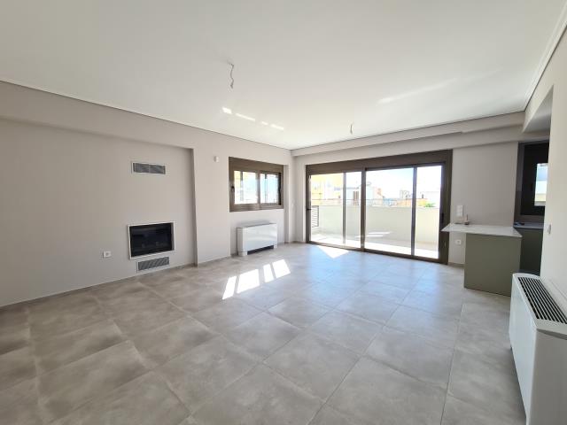 For Sale, Glyfada, Pyrnari. Newly built luxury maisonette, constructed in 2021, minimal aesthetics, second floor, total area of 125 sq.m. It has an extremely spacious living room, with an energy fireplace and open plan kitchen, which is equipped with stoves, oven, dishwasher, washing machine and refrigerator. On the same level are 2 large bedrooms with wardrobes, one of which is the master, and a main bathroom. On the second level (upper floor) there is an open plan space that can be used either as a bedroom, or as an office, or as a playroom with its own bathroom. It also has double glazing with aluminum frames, screens, electric awnings, fancoil system for heating and cooling, solar water heater, alarm, security door and intercom with camera. The property is surrounded by terraces (partial sea view on the front and mountain view on the back terraces) and the orientation is south. Parking is available in the ground floor and a warehouse in the basement.