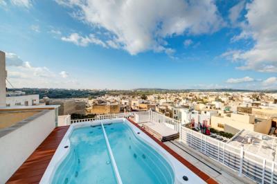 Perfectly positioned and recently built PENTHOUSE offering unobstructed distant country views and Mdina, complemented with 166 sqm internally, 190 sqm outside area, full ownership of the roof and ready to move into. The property forms part of a small block and is served with a lift. It offers comfortable, modern and spacious accommodation with plenty of natural light, fully air-conditioned and two spacious terraces. The layout consists of a welcoming reception, open plan kitchen, living, dining room, guest WC, and three double bedrooms all with en-suite (the main bedroom with walk-in wardrobe and its en-suite comes with a bath and a shower). Adding value to this property is a Jacuzzi, a log-burning modern fireplace, solar panels and a two-car lock-up garage with plenty of storage space. Viewings are highly recommended. Freehold