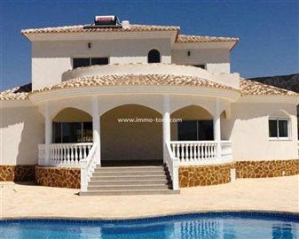 VILLA IN TYPICAL SPANISH VILLAGE Fantastic Villa built on a plot of 10.000 m2 in Pinoso. The villa has a constructed area of 235m2, distributed as follows: - Ground floor: two porches of 6.55m2 and 33.70m2, a living-dining-kitchen of 51.85m2, a gallery, a storage room, a toilet, a bedroom en suite with its bathroom - First floor: 3 bedrooms, 1 bathroom, 2 terraces of 3.55m2 and 9.70m2. Included in the price: Pre-installation air conditioning ducts. Bathrooms with bathroom furniture with mirror, shower enclosure and taps Appliances: hob, oven, extractor, dishwasher Kitchen with white furniture and national granite Interior LED throughout the house and on the porch Double glazing, interior doors and white fitted wardrobes. Outside without grass or plants. Fencing with automatic vehicle door and pedestrian door. Swimming pool If you are looking for a quiet environment, close to typical Spanish villages, surrounded by mountains this is your home!