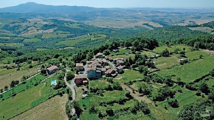 Holiday Farmhouse with independent apartments in a widespread hospitality within an ancient hamlet with swimming pool and land on the slopes of Monte Cetona, near Sarteano. In the green of Monte Cetona, with a panoramic view of the Val d’Orcia, about 4 km from the mountain top, this borgo dates its roots in the Bronze Age and later on in was an Etruscan settlement. The current houses date back to the first century of the year 1000 and set their foundations on the rock. The holiday resort, structured like a widespread hotel, consists of six apartments, with one or two bedrooms, furnished in a rustic Tuscan style, located in different spots in the borgo, each unit different from the other in terms of layout and landscape. Equipped with all comforts and completely independent, offer maximum privacy in a village inhabited by about ten residents. The apartments consist of a living room-kitchen, one or two bedrooms and a bathroom. A small restaurant of 80 sq, a tavern with cellar of 65 sq m and an office of 20 sqm are also included in the property. In the large park, overlooking the stunning landscape of Val d'Orcia, a splendid built-in stone swimming pool, table tennis, bowls, archery and barbecue for outdoor dining. The farm includes about 42 hectares of land of which 12.5 hectares of arable land, 17 hectares of forest, 7.5 hectares of pasture, 4.3 hectares of hazelnut groves and the rest are cultivated with orchards. PROPERTY Ref: 0SAR1395