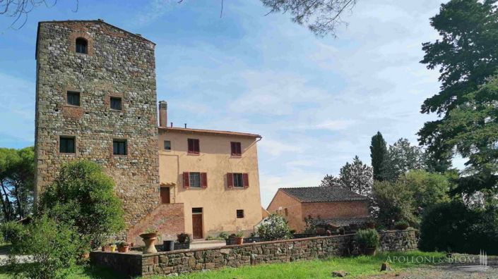 PROPERTY Ref: FIR2769Location: Gambassi Terme, Province: Firenze, Region: TuscanyType: 52.7-hectare/130-acre farm including approx. 1.140 sq m/12270 sq ft country borgo consisting of a 700 sq m/7534 sq ft farmhouse featuring an ancient stone watch tower, cellars on the ground floor and 4 apartments on the upper floors, annexes, land with a private hunting reserve, olive grove and Chianti DOCG and IGT appellation vineyardsAnnexes: two-story 90 sq m/968 sq ft former barn with external staircase; a 20 sq m/215 sq ft building with a wood-burning oven, storage room, and 1 toilet; a second former winery building of approx. 200 sq m/2152 sq ft and ceiling heights up to 7.1 mt /23 ft; a 45 sq m/484 sq ft detached deposit barn, a one-level agricultural outbuilding for storage use of approx. 90 sq m/968 sq ft and 4,4mt/14.4 ft - 4,1mt/13.4 ft of ceiling heightsYear of construction: 1200 the watch tower, 1800 and 1900 the other buildingsYear of restoration: 1971-74, 1992-1994,1997-1999 and 2004 Conditions: to be restored and upgradedLand/Garden: 52.7 hectares/130.2 acres, with hunting reserve, 16.68 ha/41.2 acres of vineyards consisting of 14.34 ha/35.43 acres of Chianti DOCG appellation and 2.34 ha/5.78 acres of IGT, 3.70 ha/9.1 acres of olive grove, and remaining are arable land and forestLayout: