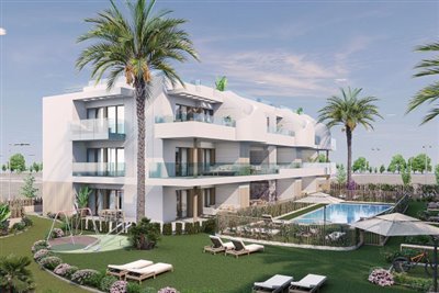 They boast a fabulous communal swimming pool, sauna, gym, children's play areas and recreational areas, community green areas and chill out areas and parking for one bicycle per dwelling. You have a choice of ground floor or first floor apartments with terrace or penthouses with your very own rooftop solarium. Each property is linked to a covered parking space in the basement and a storage room