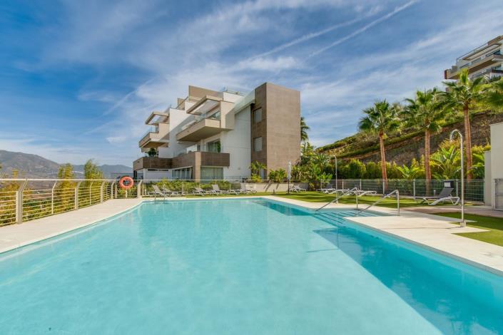 Stunning two bedroom elevated ground floor apartment located within the most exclusive gated community in La Cala Golf Resort. This exquisite two-bedroom ground-floor apartment offers an exceptional blend of luxury living and prime golf course surroundings, nestled a short walk from the Hotel, Spa and Clubhouse in La Cala Golf Resort. The property offers an ideal retreat for those who appreciate golf and leisure. It is also just a 10-minute drive from the beautiful beach front town of La Cala de Mijas, where you will find all general amenities including several major supermarkets, Health Centres, etc, etc. The apartment's interior is a masterpiece of design and functionality, with an open-plan kitchen boasting high-quality appliances and a custom-built island unit. The lounge is bathed in natural light with Schuler light fittings and leads to an expansive terrace of over 60 square meters, equipped with glass curtains - ideal for the winter months! From this terrace, you'll revel in breathtaking frontline golf and mountain views. The guest bedroom features a versatile pull-down bed, doubling up as an office space, and comes complete with a a fully fitted modular unit. Additional features include a family bathroom and a beautiful master bedroom with an en-suite bathroom and direct terrace access.