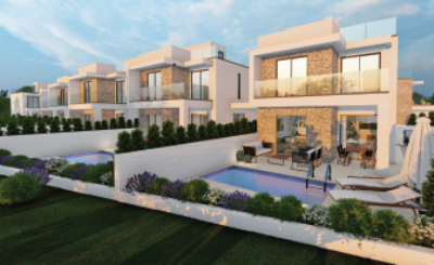 A beautiful residential development comprising 57 villas, situated in a beautiful setting in the central area of Pegeia-Paphos. The 3-bedroom villas are spacious with private swimming pools and built with high speci cations. They enjoy beautiful views of the bay and the city. The fantastic location is next to all amenities including, a medical center, pharmacy, schools, supermarket, restaurants and bars, gym, and more just minutes away. It is a short drive to the famous serviced beach of Coral Bay and the future Paphos Marina, which will be constructed shortly.