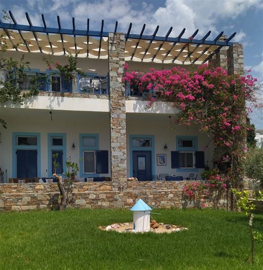 Beautiful well-maintained house on the Greek island of Evia near the town of Karystos. Located just an hour's ferry ride from the capital Athens. This house consists of two floors, each with a fully furnished apartment. The ground floor one has 1 bedroom, 2 lofts and 2 bathrooms. The first floor is a fully furnished 1 bedroom 1 bathroom apartment. Each floor has its own kitchen with built-in appliances. Both floors have a patio/terrace with a traditional Greek BBQ. The house has views from both floors of the sea and the mountains. the house is a five-minute walk from several beaches. The city center can be reached by car in 5 minutes. This is a very popular region because this part of the island has a lot to offer, even in the winter months.