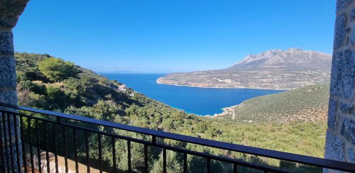 This traditional stone house of 318 sq.m. with breathtaking sea views was built in 2007 and it is located in an idyllic area above the beautiful seaside village of Oitylo. The house sits on a plot of 1400 sq.m. with charming, landscaped gardens and beautiful courtyard that allows for incredible sunset views. There is a BBQ area and a lovely green lawn that will brighten your mornings.