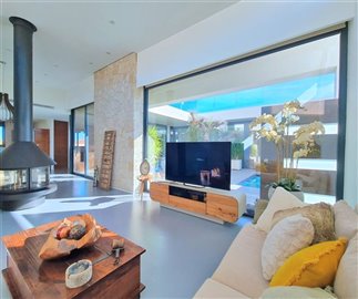 As you enter the property, you will find a beautiful courtyard, with a swimming pool that also functions as a jacuzzi. In the courtyard you also have a sitting area, surrounded by full height windows that allow you to see inside the house, providing a feeling of spaciousness.