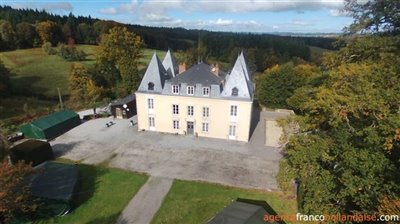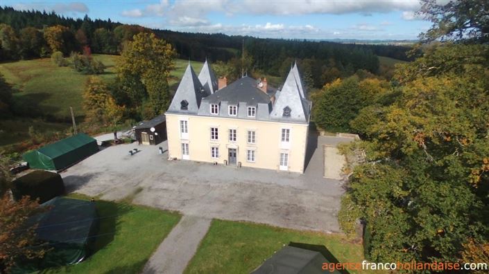 In the boiler room on the ground floor is a large wood-fired central heating system that heats the swimming pool and the radiators on the top floor. The wood comes from the owned forest, so you are completely self-sufficient.Old Health-resort building Especially the old hospital building still offers many possibilities. Over 1.200 m2 floor space which is now partly in use as 2 gîtes, storage, work rooms and the sanitary facilities for the guests. The floor of the building is largely unused and consists of several rooms. The building has a new roof with solar panels that heat the water for the private bathrooms. In addition, there are solar panels for the production of electricity.Business opportunitiesThe chateau has a camping permit (10 pitches). Until recently furnished tents were rented out. All facilities are present to continue a camping site and to rent gîtes. There is a fenced and heated swimming pool, an attractive terrace with an orangery, a dining room with a professional kitchen in the chateau. The sanitary section with 11 modern private bathrooms is in the old hospital building that is for sale too. The chateau is surrounded by approximately 6 hectares of forest with a castle pond and approximately 10 hectares of grassland. The north and west sides have a beautiful view of the Limousin countryside.LocationThe chateau is located approximately half an hour's drive from the city of Limoges, in the typical bocage landscape of the Limousin region. At 10 minutes drive you will find a village with all amenities. Of course you can walk on your own grounds of approximately 19 hectares, but also in the beautiful rural surroundings of the chateau. In short, a chateau with business opportunities that you can continue, expand or put aside: the choice is yours!