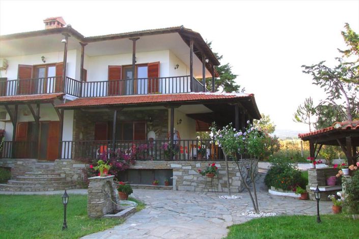 For sale maisonette of 180 square meters on a plot of 2200m2 in Sithonia, Halkidiki. The sea view maisonette has 3 floors and is located 700 meters from the sea. The ground floor consists of a living room with kitchen, a shower-toilet, a storage room. The semi-basement consists of a bedroom, living room with kitchen, a shower WC and a storage room. The first floor consists of 3 bedrooms and a bathroom. The house has beautiful views of the sea and the mountains. There is a fireplace and air conditioning. The owners leave the furniture behind during the sale. An alarm system has been installed.