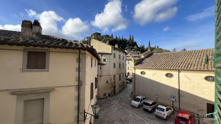 Second-floor plus attic, 1600s palazzo, panoramic views, two fireplaces, two bedrooms, for sale in the historic center of Cetona, Siena. With views over the stone-paved streets and the Tuscan hills surrounding the village of Cetona, on the second floor of a characteristic 1600s palazzo with facades outlined by stone decorations and grames, The Two-Fireplaces House, partly in need of upgrading, preserves intact its original elements with terracotta floors and wood-beamed ceilings with a rustic and charming atmosphere throughout. The entrance is onto a dining room with a fireplace and kitchen, then leads to a second living room with a fireplace, a double bedroom and a bathroom. A staircase from the living room takes to an attic space with a living room and a bedroom, to be customized as bedrooms and studios. Apolloni & Blom offers full service with a local network of professionals and builders to support you from design to complete turnkey renovation! Contact us for more details. PROPERTY Ref: CET2834Location: Cetona, Province: Siena, Region: TuscanyType: 153 sq m/1646 sq ft second-floor duplex apartment with attic floor, partly to be ugraded, panoramic open viewsYear of construction: 1600Conditions: in need of updatingLayout: