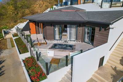 There are large driftwood type four poster beds, comfortable sofas and chaises lounges, plus a kitchenette and a cosy spot for indoor dining. The bathrooms are large and come complete with a tub and rain shower. Then the terrace provides a great location from which to soak up the incredible views.