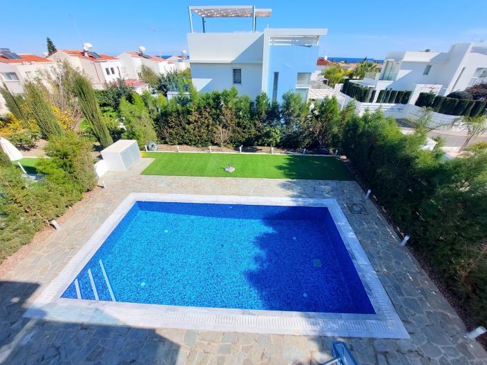 Modern 4 bedroom villa with large, private pool and garden located in Protaras Cape Greco only 500 m walk from tranquil Mimosa beach.