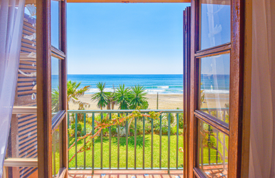 Absolutely beautiful three bedroom absolute frontline beach townhouse in Estepona. This unique property offers stunning unobstructed views to the sea, Gibraltar, and Northern Morocco, and is just metres away from the edge of the sea! The property briefly comprises of three double bedrooms, two great sized bathrooms, one of which is en-suite to the master bedroom, a large fully fitted kitchen, and a large lounge and dining area compete with open fireplace. The property has a truly fabulous south facing terrace which flows directly into a very private community garden overlooking the beaches of Costalita. The property is set within a beautiful Spanish style Pueblo community, with all onsite facilities needed for day to day living, including a very useful mini-market and several swimming pools. An absolute must view, and ideal for anyone wishing to live life without relying on a car!
