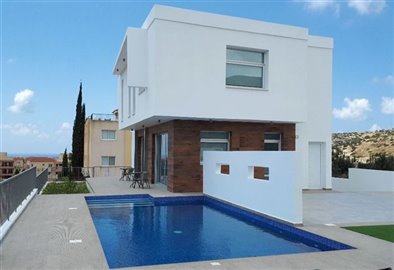 Individually designed three bedroom villa in the stunning location of Peyia, Paphos boasting panoramic views across the village to the sea with the backdrop of the mountains.