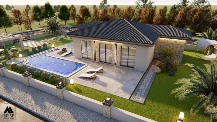 Stylish 3 bed bungalow located in Greenhill, Akbuk. The villa will consist 3 double bedrooms, 2 bathrooms, large living area with fitted kitchen, large balconies with mountain views. private swimming pool and car parking area.