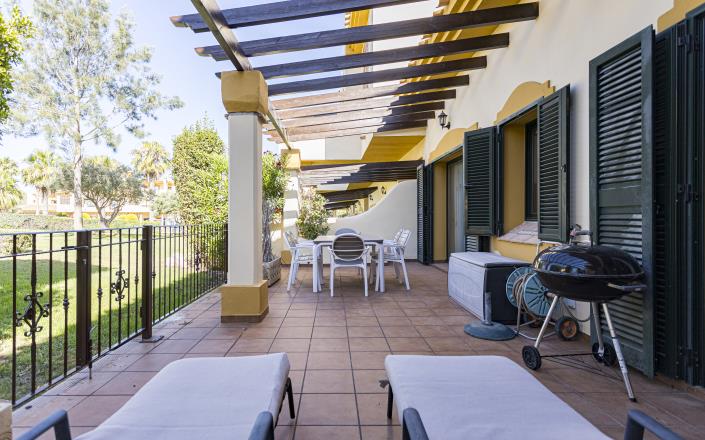Centrally located property with 3 bedroom 2 bathroom. Ideal spot for your holiday home. Two minutes´walk to the Tennis centre. Five minutes´ drive to the golf courses. Spacious and very well furnished, South facing sun terraces overlooking the pool.