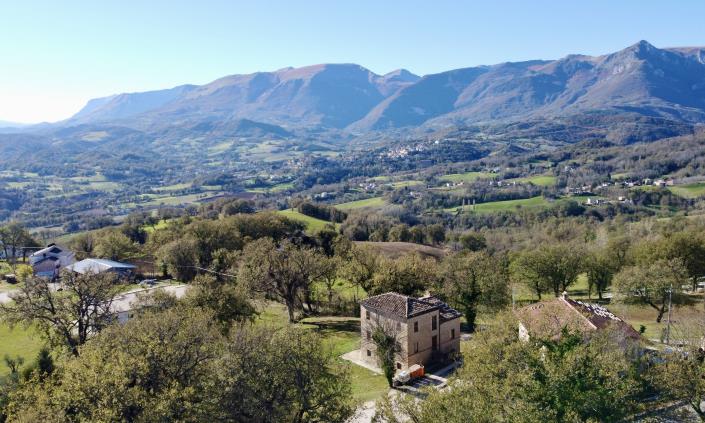 The farmhouse is completely renovated. The sandstone exteriors are made in the classical style, with the right color of the local sands. The dimensions of Casale del Poggio are perfect. Its levels of finish within are simple and unobtrusive, nothing too sophisticated, providing the beauty you would expect with typical materials such as local terracotta, travertine and wood, whilst minimizing maintenance costs. The views are spectacular. The distance from the mountains is only 15 km, in the background are the Sibillini Mountains. The distance from the city (Sarnano) is only 5 minutes by car or 30 minutes on foot and 1 hour from the airports of Ancona or Perugia, while the Adriatic coast is only 45 minutes away.