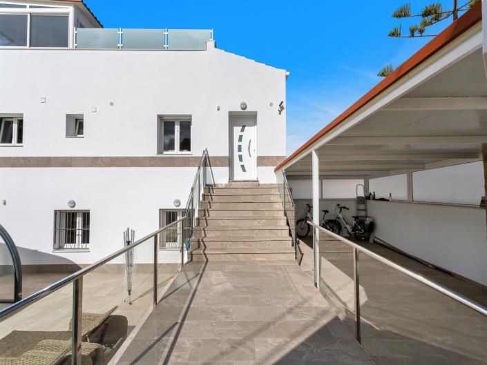 The newly tiled and damp-proofed roof terrace has a large conservatory and the other half is open. Here you can enjoy the sun and a mile-wide view all year round!