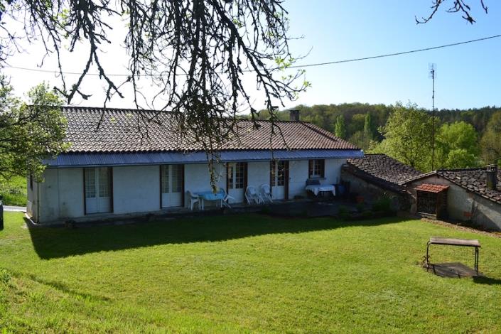 Pretty house with garden and nice views, situated in a quiet location near Riberac. The house is 100m2 with large, living dining and kitchen area with wood burner and doors out to the garden. There are 3 bedrooms and a shower room with WC and WC with handbasin