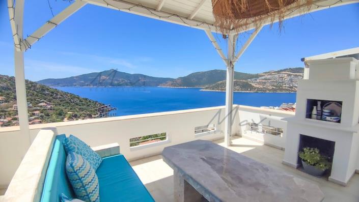 This Spacious Sea-View Villa in Kalkan is ready for you to move into. The triplex style property is built on elevated land and has fabulous sea views as well as plenty of interior and exterior living spaces. The villa is just 300 m away from the sea and about 10 m away from the local mini-market where you can buy your daily essentials. If you need to venture into Kalkan then it's just a 20-minute walk away or a 2-minute drive.