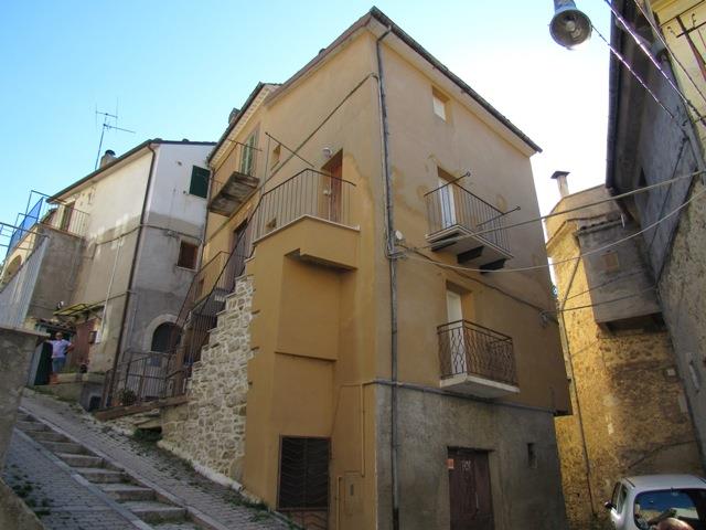 Bomba, Abruzzo. Traditional town house in the center of this old Italian town. 100 meters from the old center, offering basic shops and a bar and restaurant. 2 km from the house is a fantastic open air public swimming pool and 4km from the house is a beautiful lake, perfect for fishing, walking and water sports. Just of the lake is an international cookery school. The property has a terrace in front of the entrance which leads into the kitchen / lounge. The kitchen has a fireplace and there is a shower room inside. There is an external staircase to the first floor with access to a double bedroom with bathroom and balcony. Up internal stairs to the second double bathroom. The house is heated with gas radiators, and connected to the water, electricity, gas and sewage. Under the house is a 50sqm cellar, with old vaulted ceilings and plenty of character.