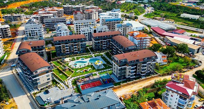 The 11.000 m² complex consists of 6 blocks and 180 apartments. Close to all daily and social amenities, the complex has luxurious features such as indoor and outdoor swimming pool, children's pool, relaxation pavilions and barbecue area, tennis court, mini golf, sauna, jacuzzi, massage rooms, Turkish bath, gym, cinema, outdoor and parking lot, generator, concierge service, 24/7 camera security system.