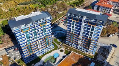 The apartments in Alanya for sale are situated in a 2-block complex in Mahmutlar center. The complex is 1 km from the coastline, 4 km from Alaaddin Kaykubat University, 5.5 km from Dimçayi Natural Park, 7.5 km from Alanya Education and Research Hospital, 10.5 km from Alanya Center, and 28 km from Gazipasa Airport.