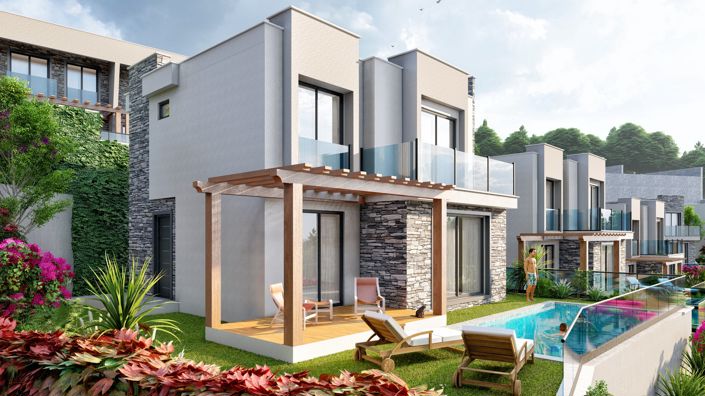 Detached and Semi-Detached Villas with Smart Home Systems and Gardens in Yasam Konaklari Project in Milas Güllük