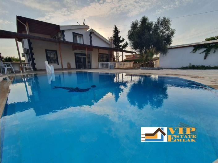 This exceptional property also includes a commercial detached pool, ideal for relaxation and entertainment. The road-facing closed area, equipped with a kitchen and WC, can be used as an office or converted into a 1+1 studio flat.