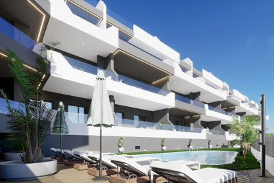 This brand new modern residential is located in the popular village of Benijofar. There are apartments with a choice of two or three bedrooms and two bathrooms. There is also the option of a penthouse which has a large private solarium, where you can enjoy the beautiful summer sunsets and mountain views. In addition, this residential has a large green area with a swimming pool for all owners, as well as optional parking and storage.