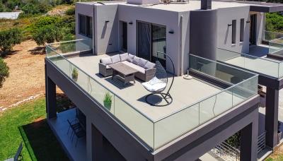 Exclusive Villa with a Fix price This amazing newly built high standards villa is 200 square meters and on 4 acres of land offers a calm and comfortable accommodation as it is sun-soaked, surrounded by a view of the ocean and wonderful green fields. With 3 bright and spacious bedrooms, 2 bathrooms, a living room, a fully equipped kitchen with all electrical appliances and a dining room. Every room has its own balcony with patio and an ocean view. The wonderful living room will offer you moments of absolute relaxation with your loved ones. With its elegant, colorful decoration and the brightness it possesses, it will delight you and give you endless energy. Each bedroom has a balcony with a sea view and furniture, while one room also has a walk-in closet.! The house is offering an elevator for practical reasons The house offers a garage The closest beach is in Agios Onoufrios, which is only 2 minutes away. Shops and facilities are in less than 3 minutes driving. The villa has plenty of space if someone would like to build a pool.