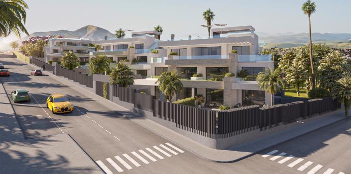 Equilibrio is a private complex comprising 15 luxurious apartments designed to exceed the highest standards of quality and comfort. Each apartment in this gated community is meticulously crafted with large glass panels that flood the interiors with natural light and offer breathtaking panoramic views from spacious terraces. Each block features a stunning penthouse with the largest private terrace available and ground-floor apartments with stunning gardens.