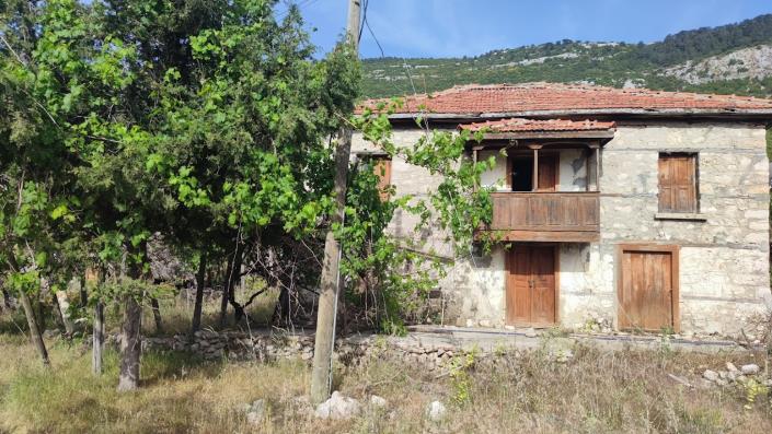 5300m2 land 16km away from Kalkan with two buildings, a stable registered in the title deed with existing water and electricity connected. It is a 60 year old house with 4 bedrooms, one bathroom, kitchen and living room with fireplace. Though it is structurally in good condition it is a property that needs some work. Ideal for someone seeking for peace and quiet in a pristine nature at the foot of Taurus Mt. The land has several mature fig, almond, olives trees.