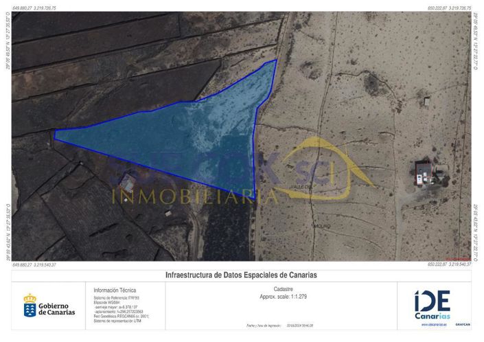 Rustic land in the area of Valle del Molino close to Mala of approximately 7113 m2 with use determined by the Town Hall of Haria under the Island Territorial Plan of Lanzarote.