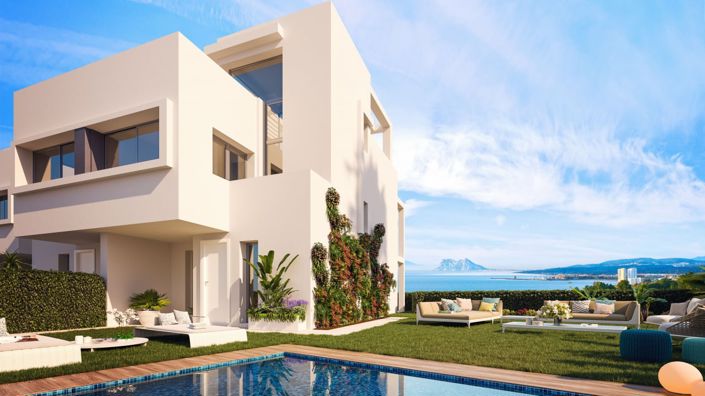 The townhouses have south and southwest orientations. The townhouses are equipped with fitted kitchens, bathrooms, wardrobes, and double-glazing windows. The terraces of the townhouses offer unique sea and Gibraltar views.