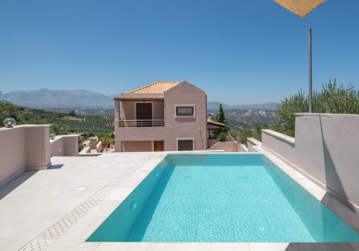 Located just 10 km from the seaside, the vibrant city of Heraklion, and Heraklion Airport, this villa offers convenience and tranquility. Enjoy breathtaking mountain views, a refreshing swimming pool, and unique features such as window screens, electric appliances, and an internal staircase.
