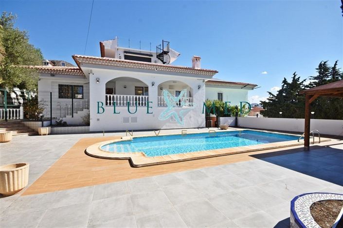 BLUE MED INVEST offers for sale this magnificent villa in the exclusive area of Bolnuevo, Puerto de Mazarrón. With a total area of 603 m², the property has a total of 4 double bedrooms, 4 bathrooms and 1 toilet, all distributed over 3 floors. ~~The main floor consists of a living room with fireplace, separate kitchen and a dining room that connects both. Then, a corridor distributes 3 double bedrooms (2 of them with bathroom en suite) and 1 complete bathroom. The first floor is formed by the master bedroom with en-suite bathroom and terrace, where we also have the stairs leading to the solarium with sea and mountain views. ~~Finally, from the outside we access the basement, where we have storage space, 1 toilet and the double garage of almost 120 m. of surface. ~~The plot of more than 1.200 m. of surface consists of a large garden that surrounds the whole house, sports area, swimming pool, parking space for several vehicles, summer kitchen and porch with barbecue. ~~This property is a unique opportunity to live in one of the most sought after areas of Puerto de Mazarrón, combining luxury, comfort and an unbeatable location near the sea.~~Call us and arrange a viewing:~BLUE MED INVEST~+34 968 595 684~