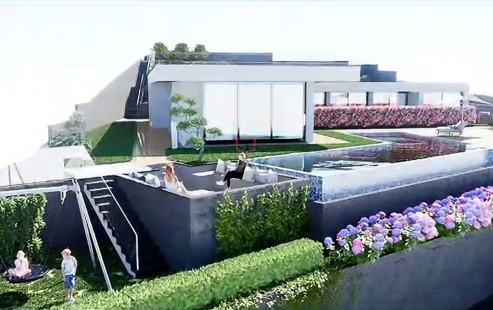 Minimalist style project typology t4, 4 suites, 5 bathrooms, garage living room, kitchen, laundry, pantry, swimming pool, gardens, living area, quite large and privileged view of the sea.