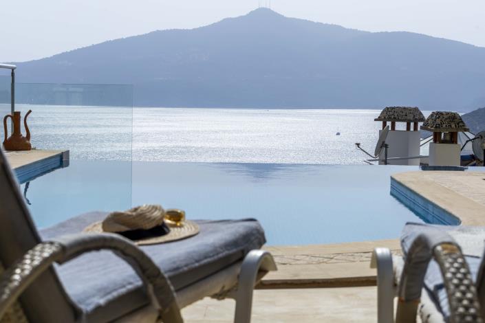 4-bedroom villa with spacious outdoor and indoor living in Kalkan Kömürlük region, overlooking the entire Kalkan bay. Each bedroom has a bathroom and there is also a large area under the roof. It can be used as either a bedroom or a study room. Sea views and especially sunsets can be watched from every point of the villa. It has a large living room and a kitchen with all kinds of equipment. The large kitchen and dining area have a very contemporary decoration. All rooms and the living room are air-conditioned, and all windows are made of double glass with thermal insulation. The villa has a private pool; Sea views can be enjoyed from the pool and the sea sun terrace around the pool. available. The outdoor relaxation corner has also been decorated separately. The villa is sold fully furnished. It has large bedroom balconies and terraces. It is within walking distance to Kalkan center and beaches and has its own open car parking area. With the sale of the villa, it is possible to obtain a residence permit for foreigners.