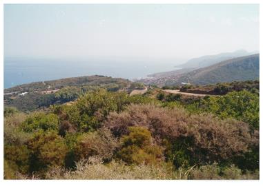 Property for sale, with an area of 19,800.50 sq.m., located in Agia Pelagia-Agia Anastasia, Kythira, offering views of the Peloponnese and Crete. The property is developed on 9 levels, includes a small building, and has approximately 250 olive trees, pistachio trees, pear trees, and other trees.