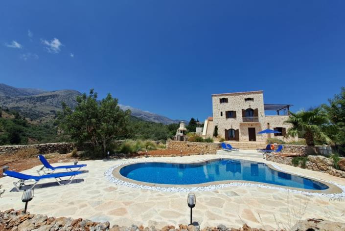 This private estate sitting at the top of a charming traditional village has dramatic views across the gorge to the white mountain plus sea views towards Rethymno and comprises of 3 stylish, newly built stone houses (280 sqm), each one with separate outdoor areas for maximum privacy. Already operating as a successful rental business, this is also a wonderful solution for multi family/friend accommodation wanting to stay close together: