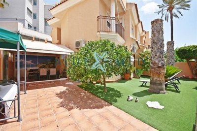 BLUE MED INVEST offers for sale this magnificent duplex in the area of El Alcolar, in Puerto de Mazarrón, offering a surface area of 125.83 m² on a plot of 183.25 m². Situated just 250 metres from the beach, this property is ideal for enjoying coastal life. ~~The property is distributed in ground floor, with living room, independent kitchen, 1 bedroom and 1 toilet; first floor consisting of 3 double bedrooms and 1 complete bathroom and finally, a third floor where we find a dressing room and the terrace with enclosure, from which we have views to the sea. ~~The property is in good condition, it comes partially furnished and has a fully equipped kitchen. The east-west orientation ensures excellent natural light throughout the day.~~Extras include split air-conditioning and heating, ceiling fans, fitted wardrobes, pantry, security grills and mosquito nets on all windows. In addition, the property is on a corner, which gives it more privacy.~~As for the exterior, the plot has a large garden, a patio - laundry room that gives access to the communal swimming pool, as well as a glazed terrace that allows you to enjoy the outdoors all year round.~~In short, this is a perfect option for those who are looking for a comfortable and cosy residence close to the sea.~~Call us and we will arrange a visit:~BLUE MED INVEST~+34 968 595 684~