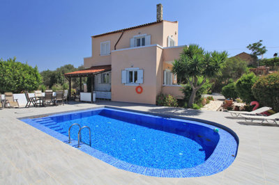 This lovely 4 bedroom villa sits on a private plot amongst beautiful forestry land close to the centre of the village of Xirosterni and 5 minutes drive from the larger village of Vamos.