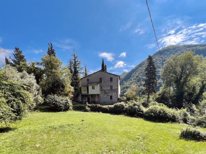 The second half of the house is less well maintained and consists of another kitchen and three more large rooms with an entrance from the terrace on the first floor. There are three steps up to the last room. This half also has its own bathroom.