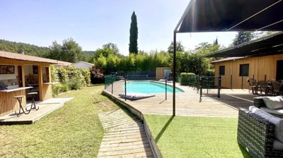Situated in a dominant position with views of the Luberon, in a quiet area just 3 minutes by car from the centre of La Roque d'Anthéron, this contemporary-style single-storey house of around 146m2 and a garden of around 1030m2 has all the benefits of living in the heart of nature, with all amenities close at hand.
