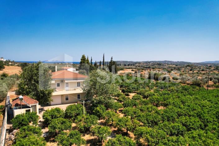In an enchanting garden full of citrus, olive, mulberry and other trees, on a gently sloping hill and less than 2 kilometers from the sandy beach of Petrothalassa, a ground floor detached house is available for sale. This residence, with a total area of 162.40 square meters, is located within a fenced plot of 6 thousand square meters. The main volume of the residence extends over two independent levels that communicate with each other with an internal staircase. The ground floor, with an area of 93.7 square meters, consists of a single living room with kitchen, a bathroom and two bedrooms. In addition, it has an internal storage space and a garage of 14.60 square meters that communicates with the apartment, offering comfort and practicality. The second level, with an area of 70.70 square meters, consists of a single living room with a kitchen, a bathroom and two bedrooms. This level is surrounded by a comfortable perimeter terrace that offers a beautiful view of the plain and the hills of Portohelio, as well as the mountains of the island of Spetses, making it the ideal place to relax and enjoy the scenery and the tranquility of the area. Access to the plot is via a municipal paved road and the plot is fenced, offering security and privacy. Most of the plot is planted with orange trees, while around the perimeter of the house there are various trees that provide shade and aesthetic beauty. A short distance from the residence is a 12.87 square meter shed-house and a barbecue, ideal for storage and entertaining purposes. On the plot there is the possibility of building a swimming pool and setting up outdoor spaces. It is worth mentioning that the residence is accompanied by the right to use water from an adjacent well. This independent detached house is ideal for those looking for a calm and natural environment, close to the sea, with comfortable indoor and outdoor spaces. Its proximity to the beach of Petrothalassa and the beautiful view towards the plain and the mountains make this residence unique. It offers the opportunity for quality living in a green paradise, combining natural beauty with modern comforts. With its spaces being comfortable and practical, and its surroundings offering peace and tranquility, this residence is an excellent choice for a permanent or holiday home. Indicatively, we should mention that the residence is located at a distance 1.6 km from the nearest beach, 3 km from cosmopolitan Porto Heli 4 km from the settlement of Kranidi with its shops, banks, health center, etc 9 km from the picturesque settlement of Ermioni 200 km from Athens International Airport.