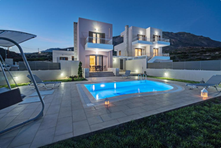 The outdoor area is a true highlight, with a large garden and private pool perfect for relaxation or entertaining friends. These houses in Triopetra combine modern comfort with natural beauty, making them an ideal retreat or investment opportunity.