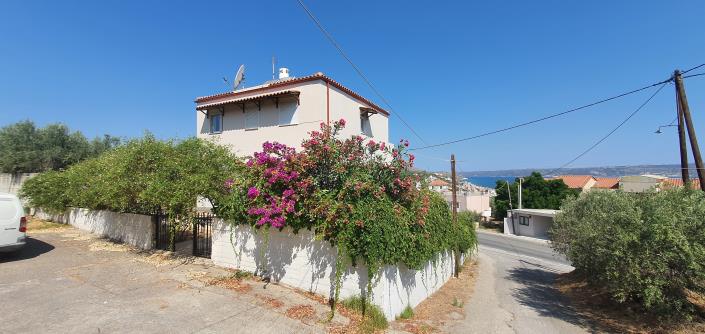 ?his wonderful villa is located in the heart of the village of Kalyves near all the amenities such as the sandy beaches, pharmacies, various cafes, tavernas, and a lot more. As you enter this villa you can see a bright kitchen, open plan living and dining area. There is a fireplace in the living room that is making the place really cozy in the winter season. Additionally, there is a spacious bedroom with a large wardrobe and a bright bathroom with a bath and a toilette. From the living room there is a patio door that leads us to a large balcony with breathtaking sea and mountain views A comfortable wooden staircase leads us to the second floor where we can find the master bedroom which is en suite two other bedrooms and a bathroom with a shower. Two bedrooms have access to a big terrace with a spectacular view of Souda Bay and the mountains. Last but not least, a wooden staircase from the ground floor, leads us to a spacious basement which can be used as a self-contained two-bedroom apartment with separate access or as a spacious playroom and TV room. There is also a door featured in this basement for easy access to a separate garage room. The property offers a spacious yard with many green trees and gardening space. We along with the entire Minoan-properties team are present to help you with any inquiries that you may have about this wonderful villa. You can visit our office or contact us using the details provided in our website.