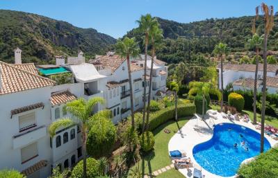Absolutely stunning four-bedroom duplex penthouse apartment is located in the heart of the picturesque village of Benahavís, a true gem on the Costa del Sol. The property offers a spacious and naturally bright layout, perfectly designed to take advantage of the breathtaking views of the surrounding Angosturas Canyon and mountains. The main level of the apartment welcomes you with a well-appointed kitchen, a guest WC, and a generously sized living room complete with a cozy fireplace. This space opens onto a beautiful terrace with a built in BBQ and provides fabulous views over Benahavis Parque Torre Leonera and further onto the mountains. Three double bedrooms, main en-suite and a family bathroom complete this level, providing ample space for family and guests.